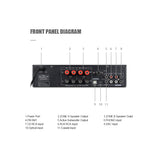 | The AMCD2000 model features a maximum output of 200W (50W x 4) and is equipped Bluetooth, DAC, USB, CD, AUX, Phono, Optical, Coaxial, DSP, FM, 2 microphone Inputs, and a sub out. Utilizing a powerful output of 50W x 4 at 1 KHz with a THD10% measurement, the CDD 2.0 Ch. Amplifier provides exceptional sound quality. |