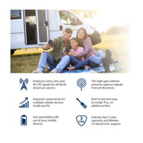 - Enhances voice, text, and 4G LTE signals for all North American carriers.