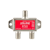 This diplexer was designed by Holland Electronics and combines or separates the off-air and satellite signals. The advantage of this device over a standard splitter is the lower insertion loss, approximately 1-2 dB (vs 3.5-4.5), and the extended isolation. Satellite distribution systems use this device to combine the CATV or off-air signal with the launch amplifiers' output as well as to separate the signals before line amplification before the DBS receiver